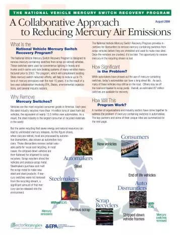 ISRI collaborates with the U.S. Environmental Protection Agency and other groups to establish the National Vehicle Mercury Switch Recovery Program, designed to remove up to 90% of mercury light switches from recycled vehicles.